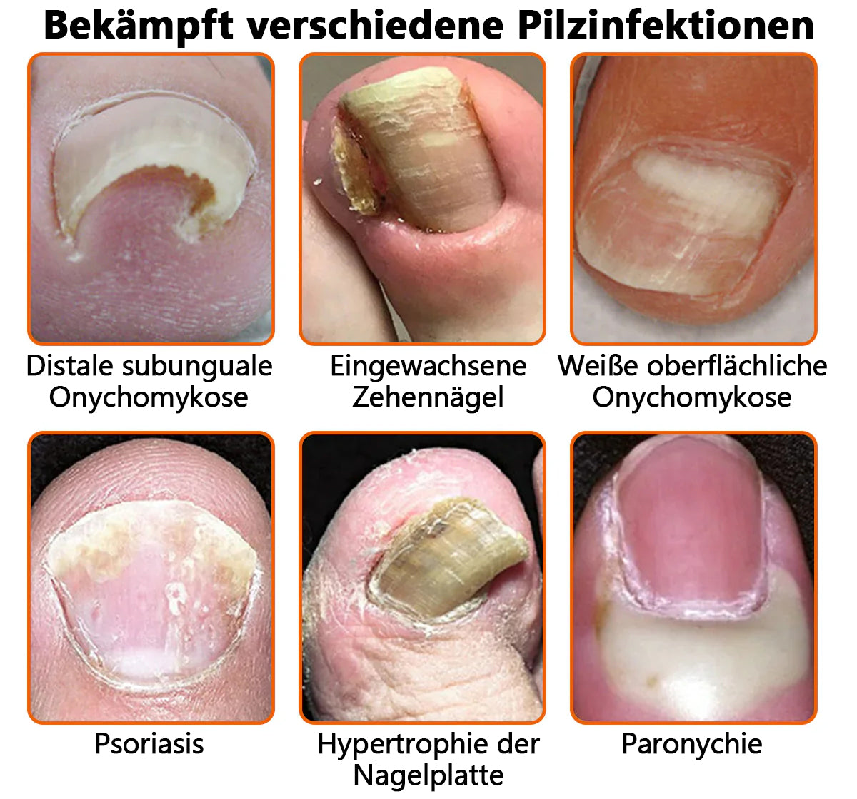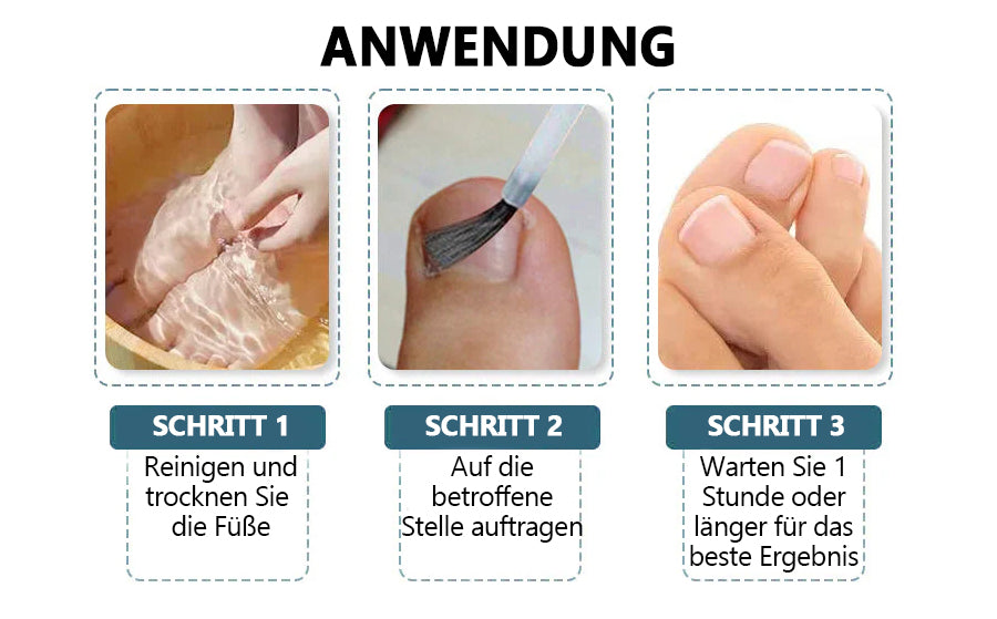 Diese Inhaltsstoffe wirken gemeinsam, um Pilzinfektionen zu beseitigen, beschädigte Nägel zu reparieren und ihre natürliche Stärke und Schönheit wiederherzustellen.